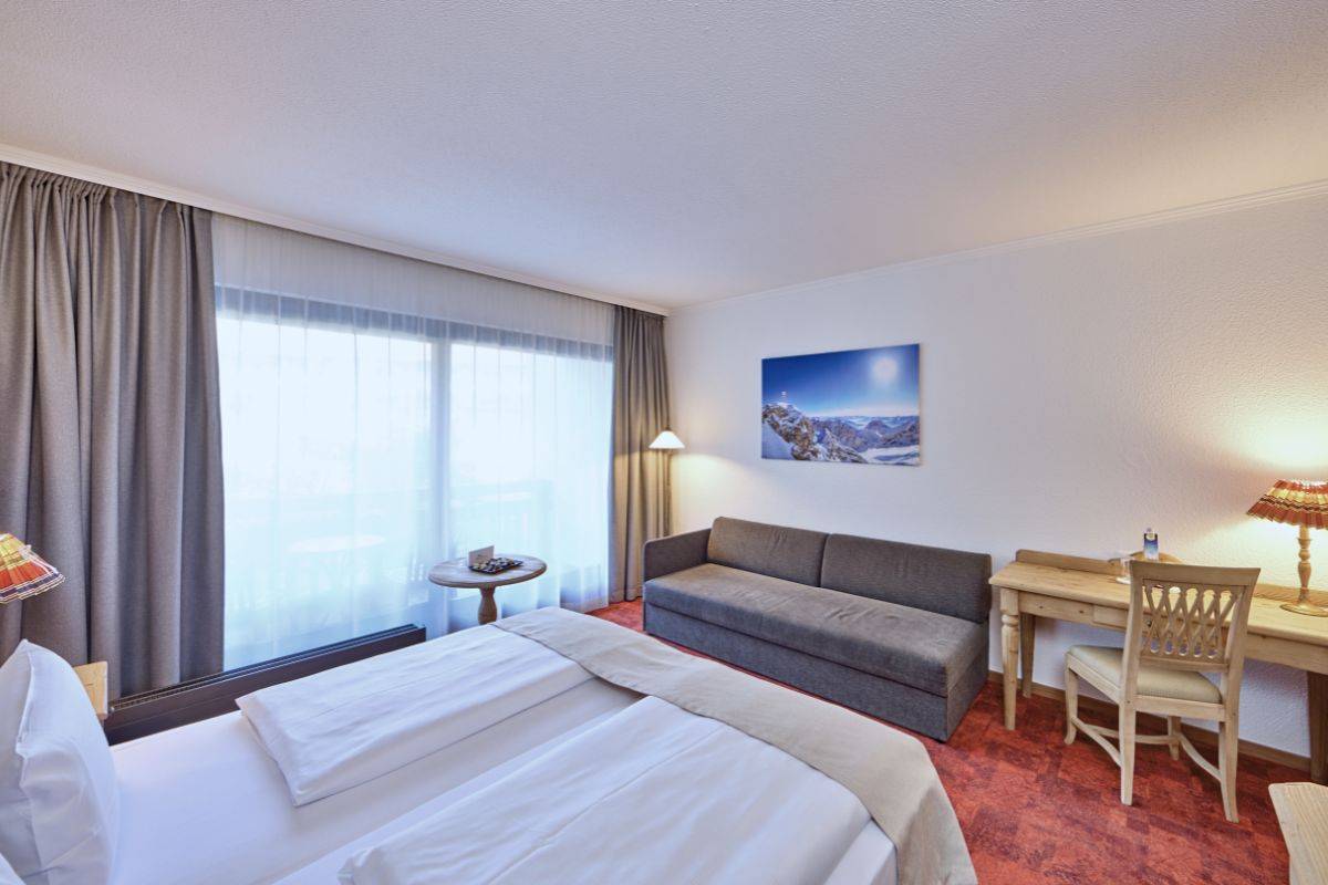 Unsere Standardzimmer im Haus Alpspitz und Haus Werdenfels überzeugen mit einem lichtdurchfluteten Raum und einem herrlichen Ausblick auf die beeindruckende Bergwelt. Genießen Sie die frische Luft auf Ihrem Balkon oder der Terrasse, während Sie sich nach einem aktiven Tag in den Bergen entspannen. Diese Zimmer bieten Ihnen die perfekte Mischung aus Komfort und alpiner Gemütlichkeit, gepaart mit modernen Annehmlichkeiten. Hier finden Sie den idealen Ort, um sich zurückzuziehen und die Bergwelt in vollen Zügen zu genießen.