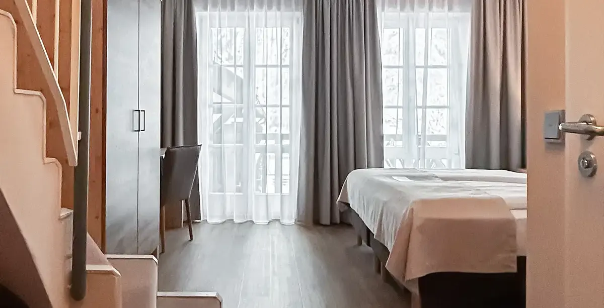 The bright and spacious Family Rooms at Berghotel Hammersbach offer 45 m² of space for up to four guests. Featuring a balcony with stunning views of the mountains, they are the perfect retreat for families looking to spend quality time together in the mountains. The comfortable amenities ensure that nothing is missing for you and your loved ones, while the fresh mountain air and surrounding nature provide the ideal setting for both relaxing and adventurous days.